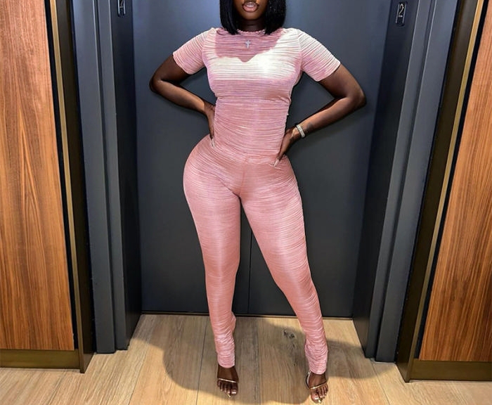 (Pink)2023 Styles Women Sexy&Fashion Spring&Summer TikTok&Instagram Styles Short Sleeve Two Piece SuitSKU: #CF47498-3