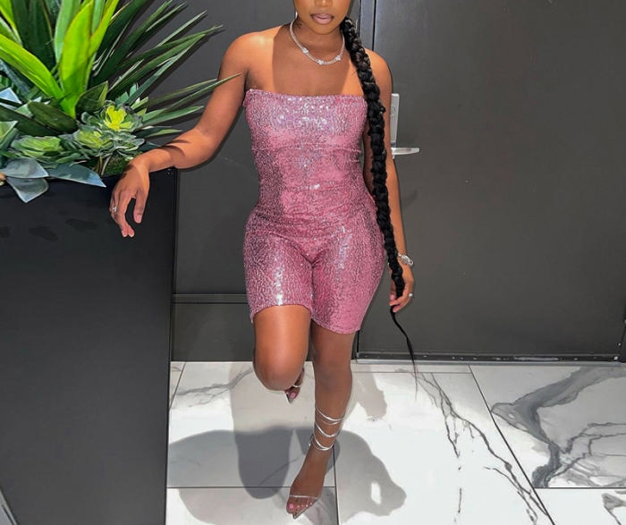 (Pink)2023 Styles Women Sexy&Fashion Spring&Summer TikTok&Instagram Styles Tube Sequin RomperSKU: #CF47457-2