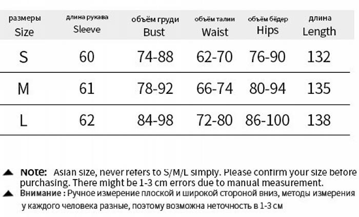 | Size | Bust | Waist | Hips |