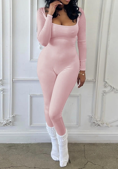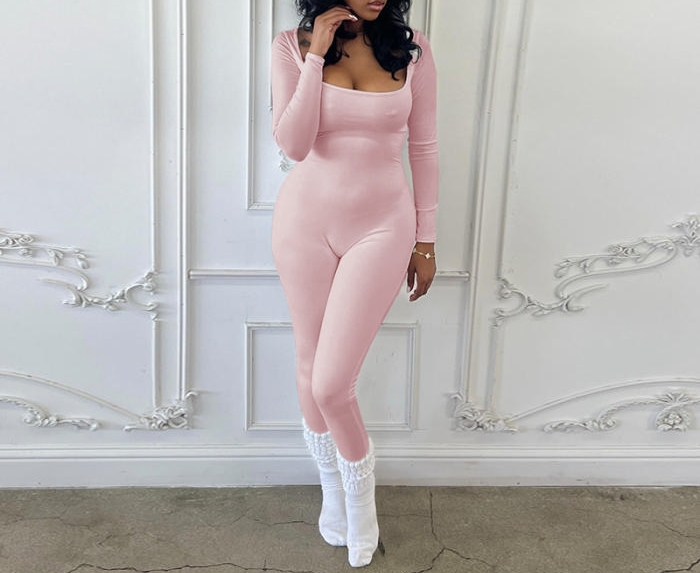 (Pink)2024 Styles Women Form-fitting Long Sleeve Women's JumpsuitSKU: #GF04010-2