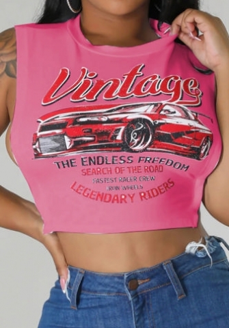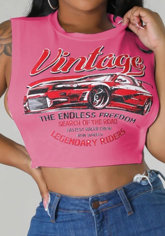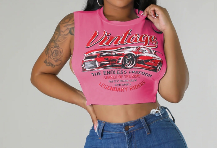 (Pink Car)2023 Styles Women Sexy&Fashion Spring&Summer TikTok&Instagram Styles Print Sleeveless TeeSKU: #CF59554-7
