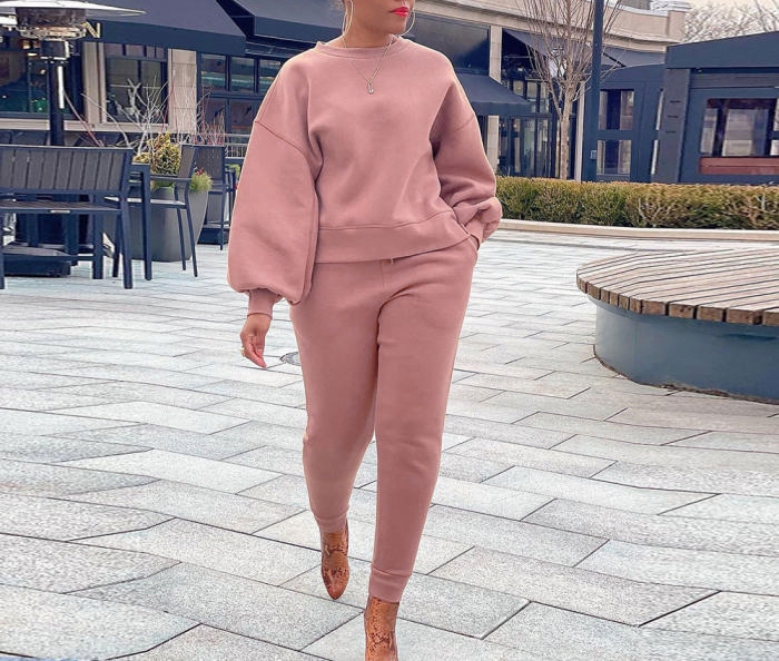 (Pink)(Plus Size)2022 Styles Women Fashion Spring&Winter TikTok&Instagram Styles Solid Color Two Piece SuitSKU: #XF27271-5