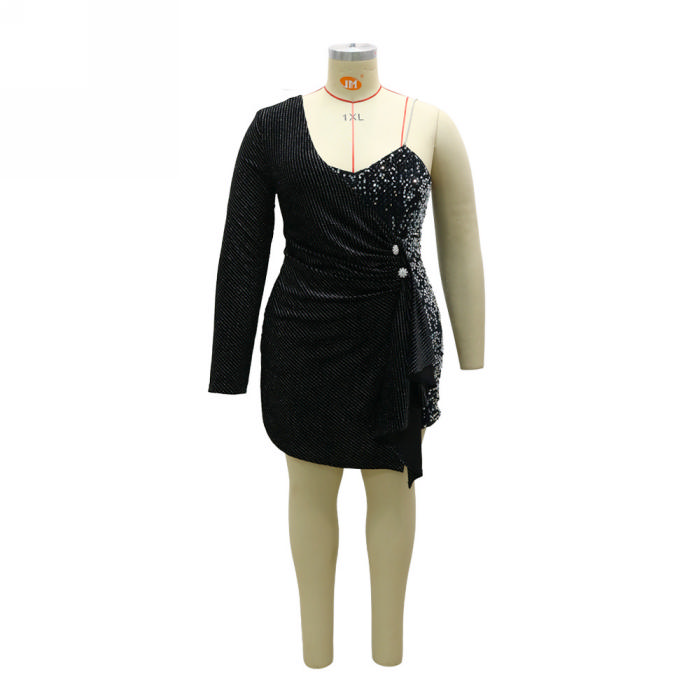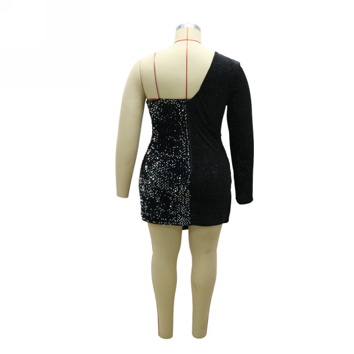 Plus Size 2021 Styles Women Fashion INS Styles Fashion Autumn Sequins DressSKU: #CF27109-1