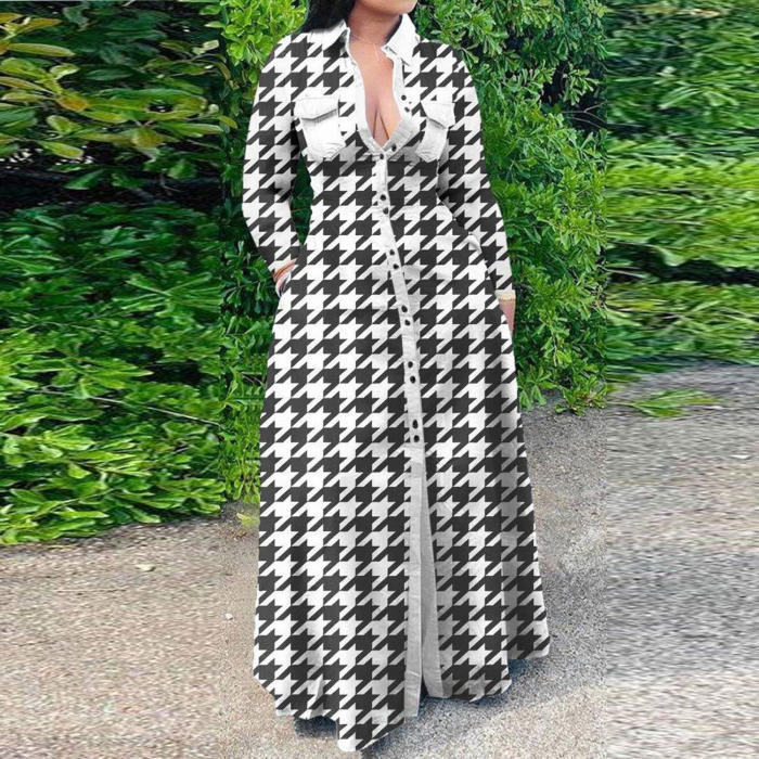 (Plus Size)2022 Styles Women Fashion Spring&Winter TikTok&Instagram Styles Front Button Maxi DressSKU: #XF27262-1