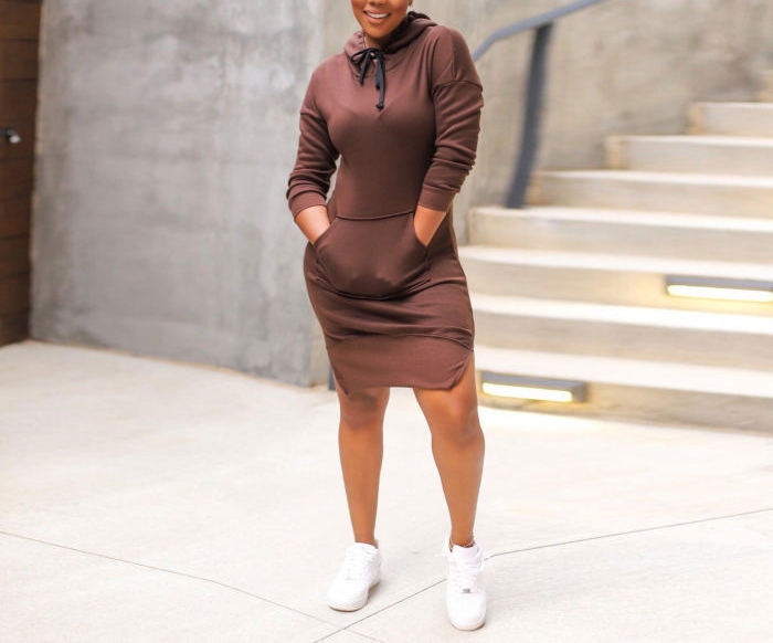 (Plus Size)2022 Styles Women Fashion Spring&Winter TikTok&Instagram Styles Hoodie Long Sleeve Mini DressSKU: #XF27267-2