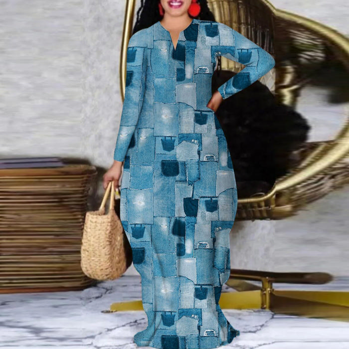 (Plus Size)2022 Styles Women Fashion Spring&Winter TikTok&Instagram Styles Long Sleeve Maxi DressSKU: #XF27256-1
