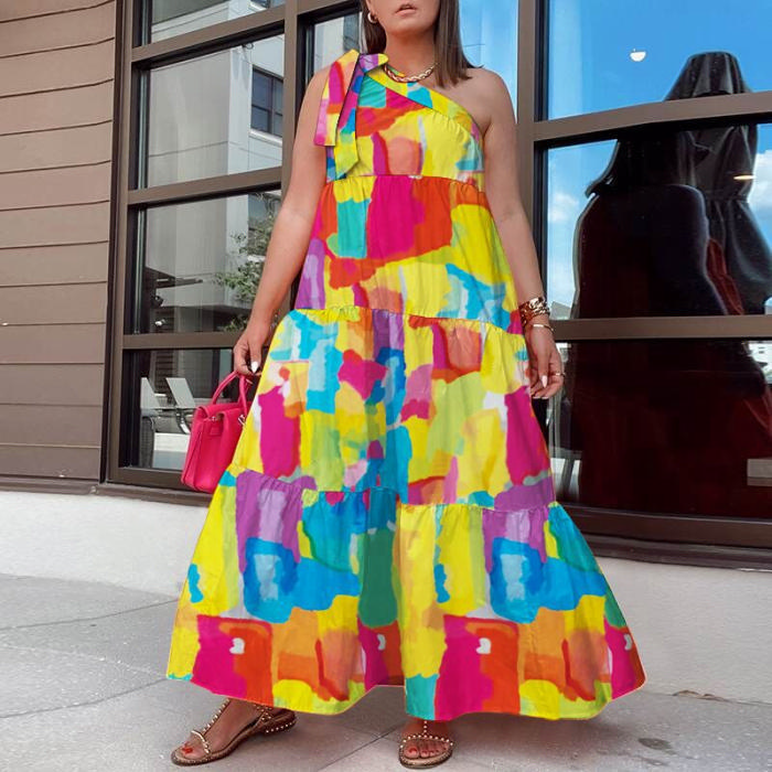 (Plus Size)2022 Styles Women Fashion Spring&Winter TikTok&Instagram Styles Print Loose Maxi DressSKU: #XF27266-1