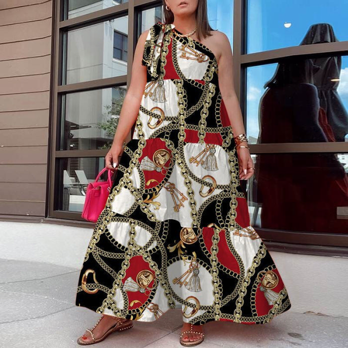 (Plus Size)2022 Styles Women Fashion Spring&Winter TikTok&Instagram Styles Print Loose Maxi DressSKU: #XF27266-2