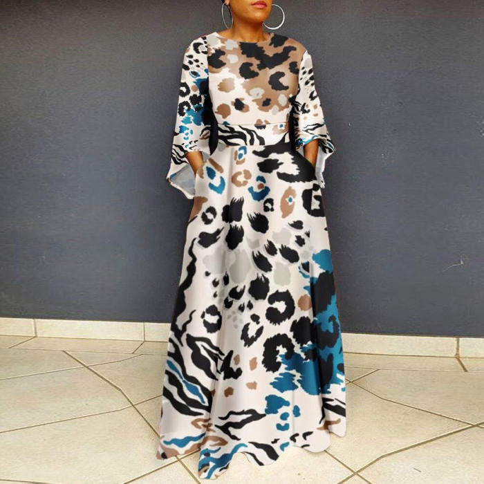 (Plus Size)2022 Styles Women Fashion Spring&Winter TikTok&Instagram Styles Print LooseMaxi DressSKU: #XF27277-5