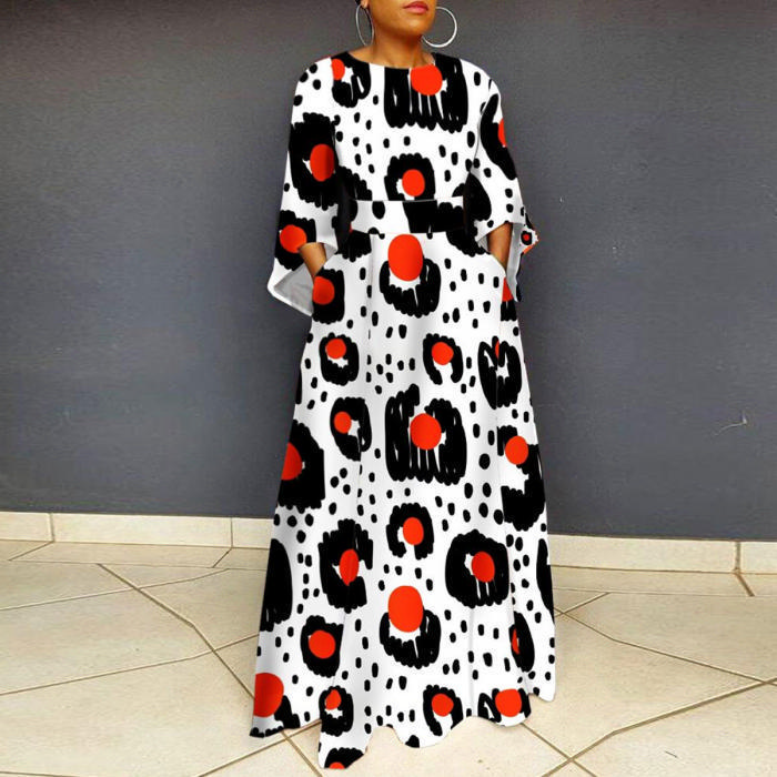 (Plus Size)2022 Styles Women Fashion Spring&Winter TikTok&Instagram Styles Print LooseMaxi DressSKU: #XF27277-4