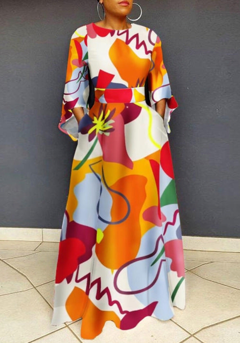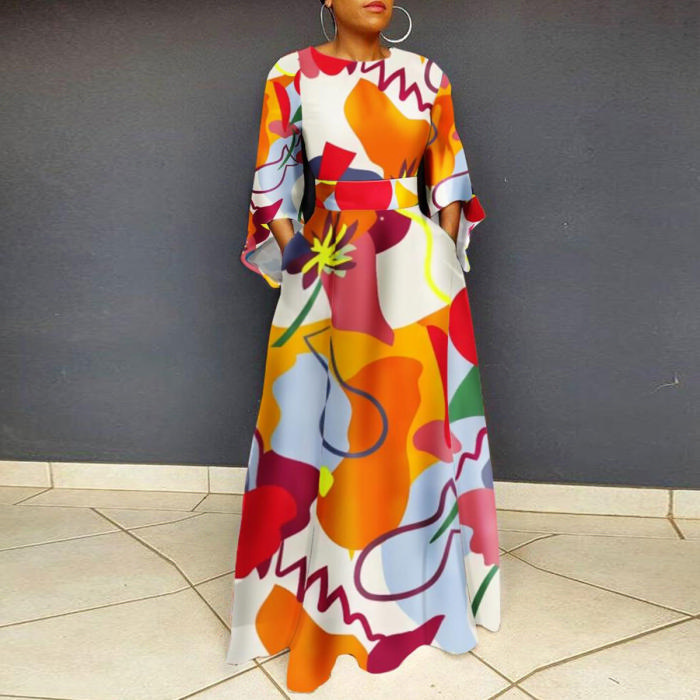 (Plus Size)2022 Styles Women Fashion Spring&Winter TikTok&Instagram Styles Print LooseMaxi DressSKU: #XF27277-3