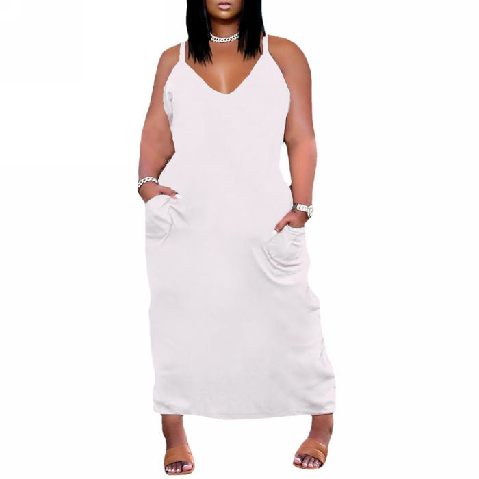 (Plus Size)2022 Styles Women Sexy INS Styles Solid Color Strap Maxi DressSKU: #XF27216-2