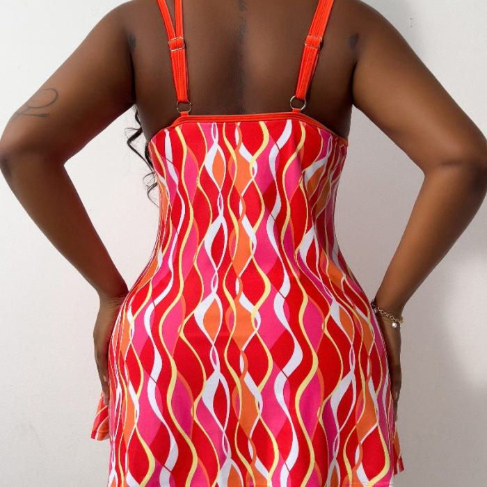 (Plus Size)2024 Styles Women Seductive Plus-Size Printed SwimwearSKU: #CF89022-1