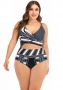 (Plus Size)2024 Styles Women Solid Color Plus-Size Halter Bikini with Black Chiffon Swimsuit SetSKU: #CF89030-1