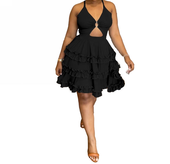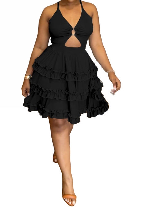 (Plus Size)(Black)2023 Styles Women Sexy&Fashion Spring&Summer TikTok&Instagram Styles Mesh Hem Mini DressSKU: #XF27392-1