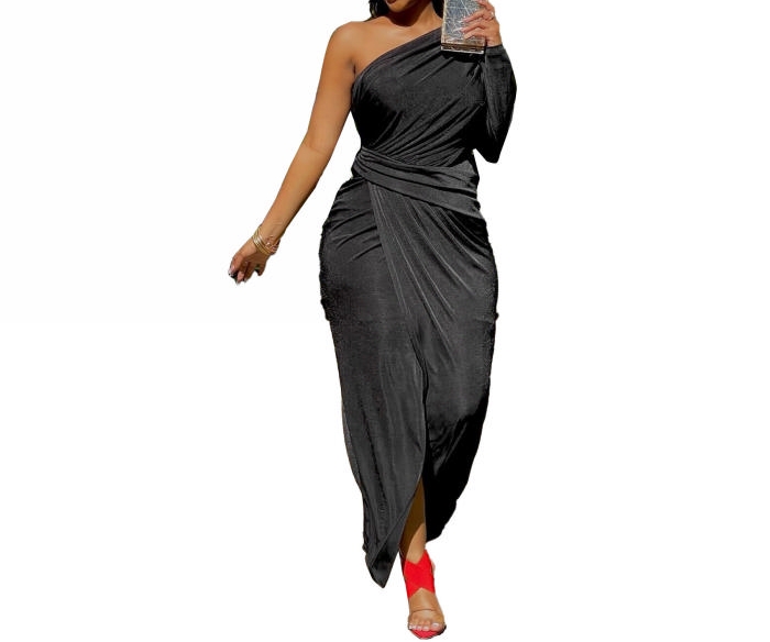(Plus Size)(Black)2023 Styles Women Sexy&Fashion Spring&Summer TikTok&Instagram Styles Solid Color Loose Maxi DressSKU: #XF27389-1