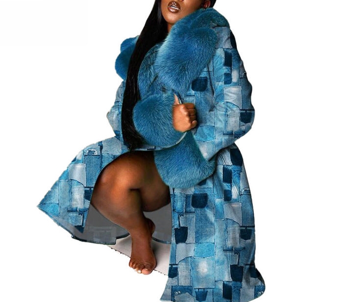 (Plus Size)(Blue)2022 Styles Women Sexy Spring&Winter TikTok&Instagram Styles Open CoatsSKU: #XF27307-2