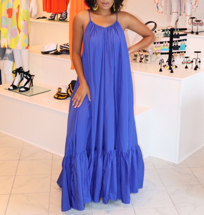 (Plus Size)(Blue)2022 Styles Women Sexy Spring&Winter TikTok&Instagram Styles Strap Loose Maxi DressSKU: #CF03001-17