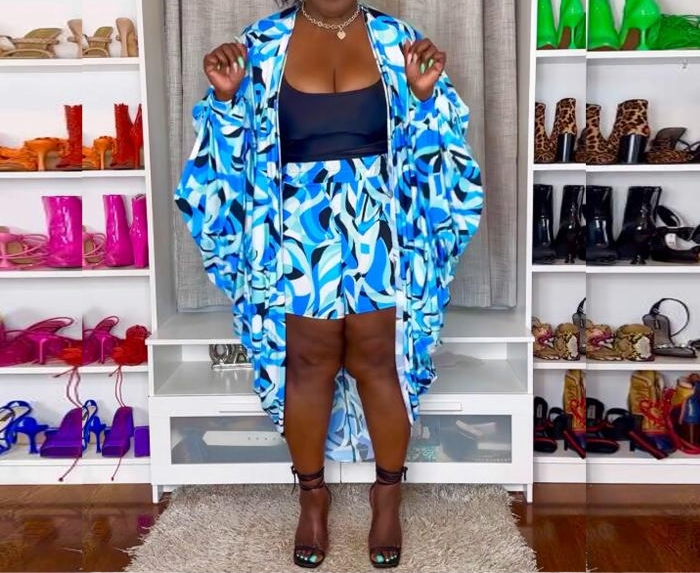 (Plus Size)(Blue)2023 Styles Women Sexy&Fashion Autumn/Winter TikTok&Instagram Styles Short Two Piece SuitSKU: #XF27426-2