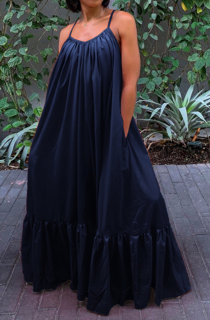 (Plus Size)(Dark Blue)2022 Styles Women Sexy Spring&Winter TikTok&Instagram Styles Strap Loose Maxi DressSKU: #CF03001-19