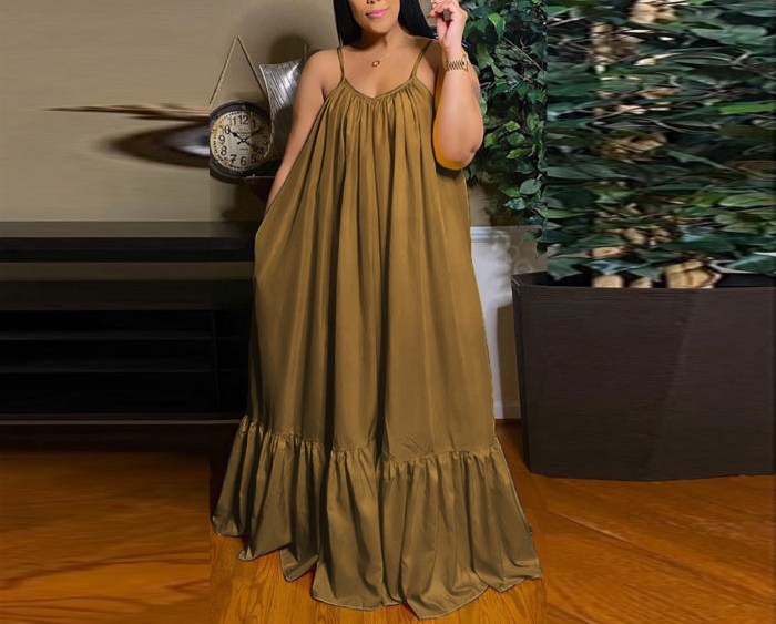 (Plus Size)(Dark Khaki)2022 Styles Women Sexy Spring&Winter TikTok&Instagram Styles Strap Loose Maxi DressSKU: #CF03001-24
