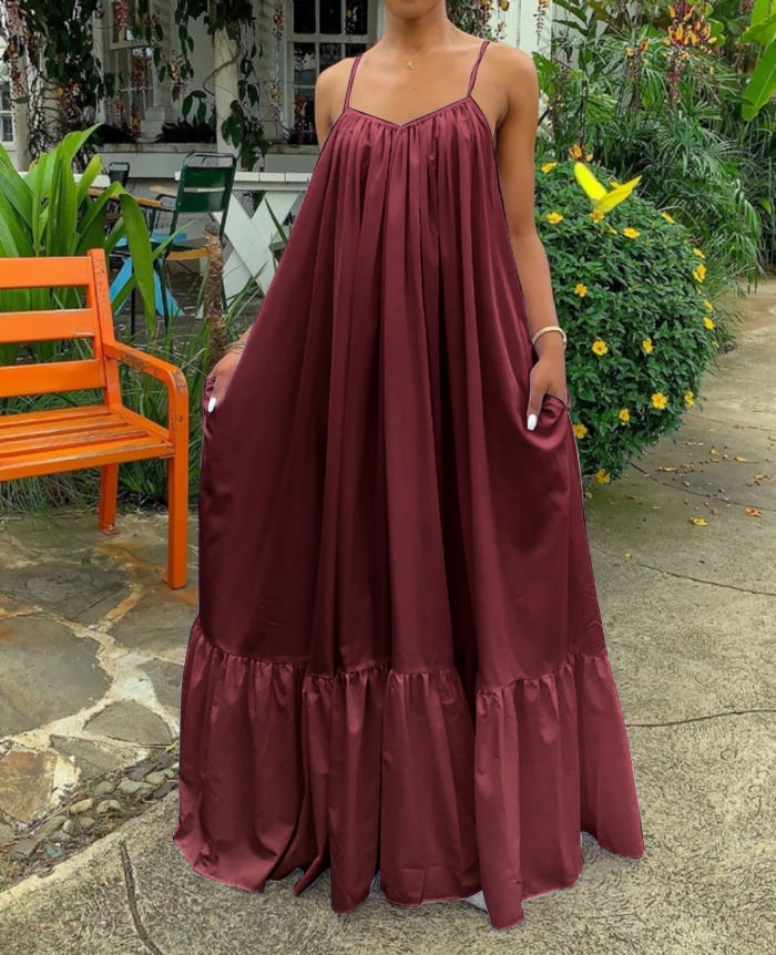 (Plus Size)(Dark Red)2022 Styles Women Sexy Spring&Winter TikTok&Instagram Styles Strap Loose Maxi DressSKU: #CF03001-6
