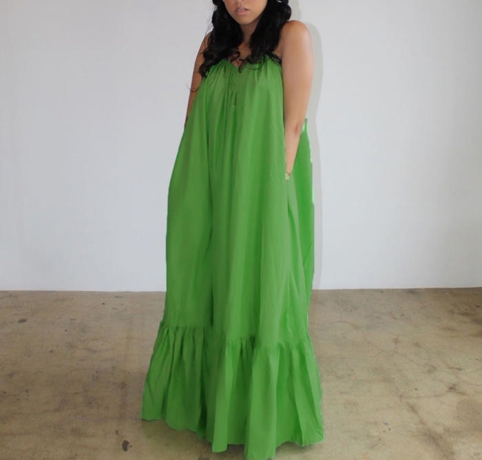 (Plus Size)(Green)2022 Styles Women Sexy Spring&Winter TikTok&Instagram Styles Strap Loose Maxi DressSKU: #CF03001-9