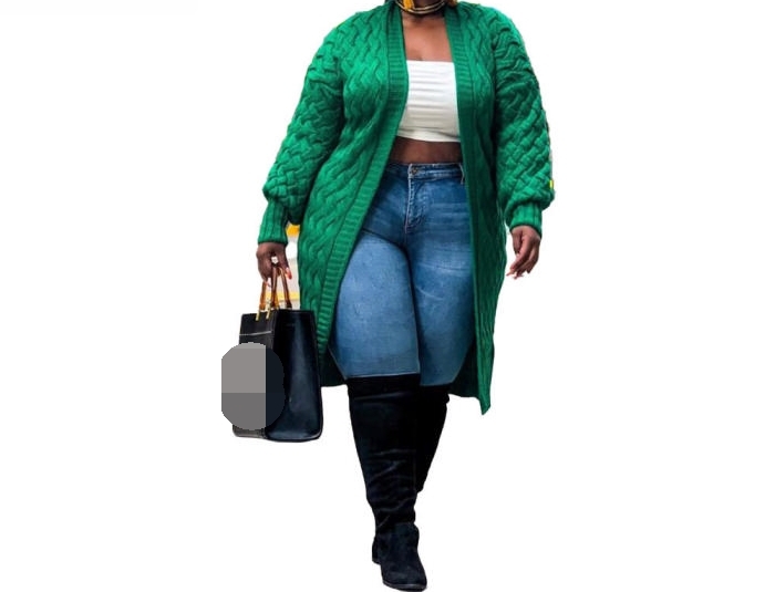 (Plus Size)(Green)2023 Styles Women Sexy&Fashion Autumn/Winter TikTok&Instagram StylesSweater Open Long CoatsSKU: #XF27438-1