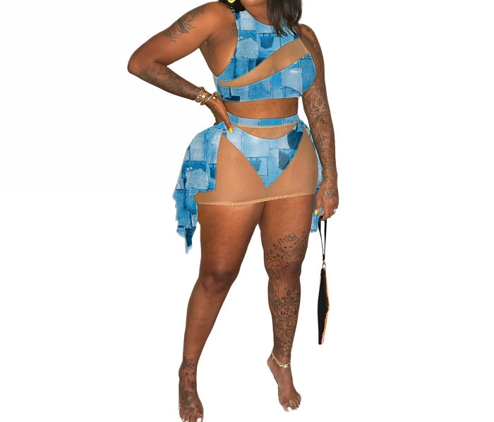 (Plus Size)(Jeans Blue)2023 Styles Women Sexy&Fashion Spring&Summer TikTok&Instagram Styles 3 Piece SwimsuitSKU: #XF27411-6