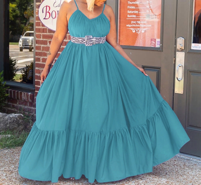 (Plus Size)(Lake Blue)2022 Styles Women Sexy Spring&Winter TikTok&Instagram Styles Strap Loose Maxi DressSKU: #CF03001-20