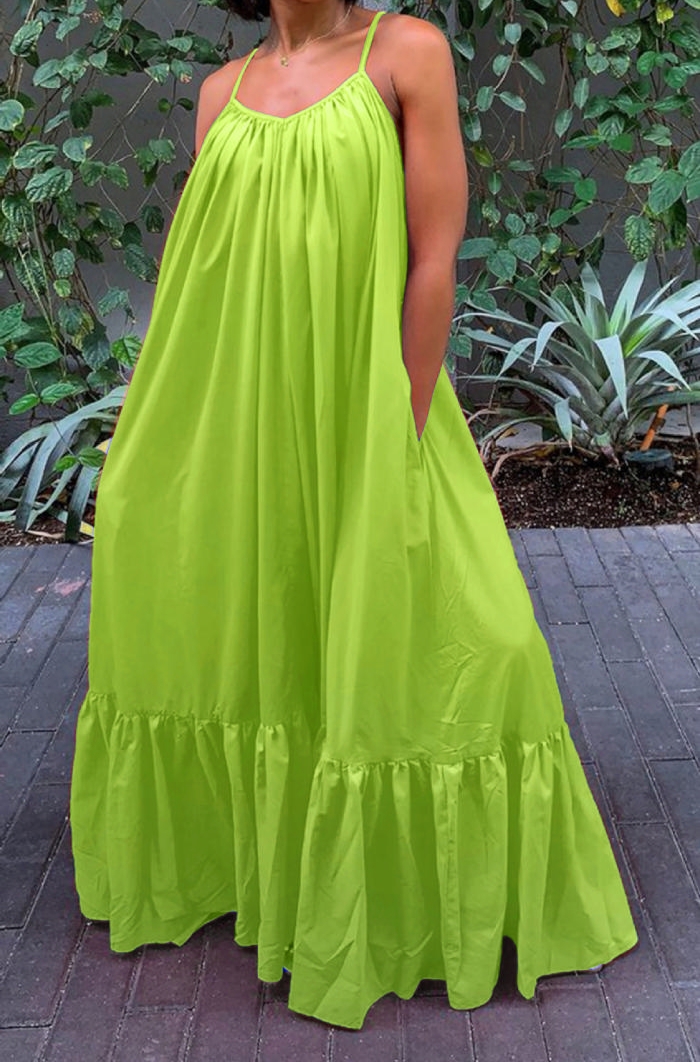 (Plus Size)(Light Green)2022 Styles Women Sexy Spring&Winter TikTok&Instagram Styles Strap Loose Maxi DressSKU: #CF03001-26