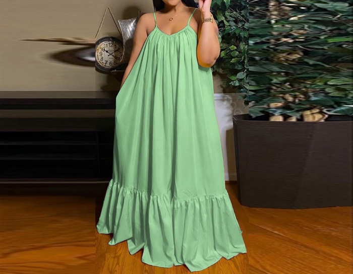 (Plus Size)(Light Green)2022 Styles Women Sexy Spring&Winter TikTok&Instagram Styles Strap Loose Maxi DressSKU: #CF03001-22