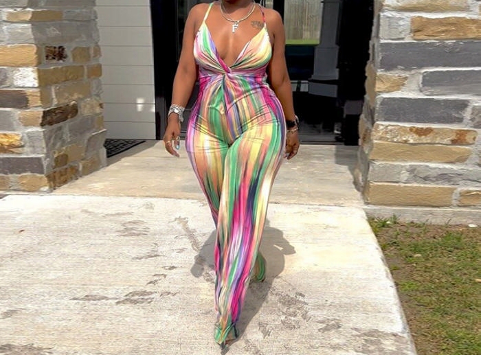 (Plus Size)(Pink)2023 Styles Women Sexy&Fashion Spring&Summer TikTok&Instagram Styles Print Strap JumpsuitSKU: #XF27402-1