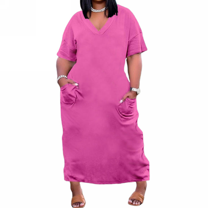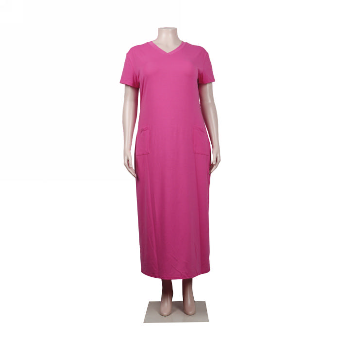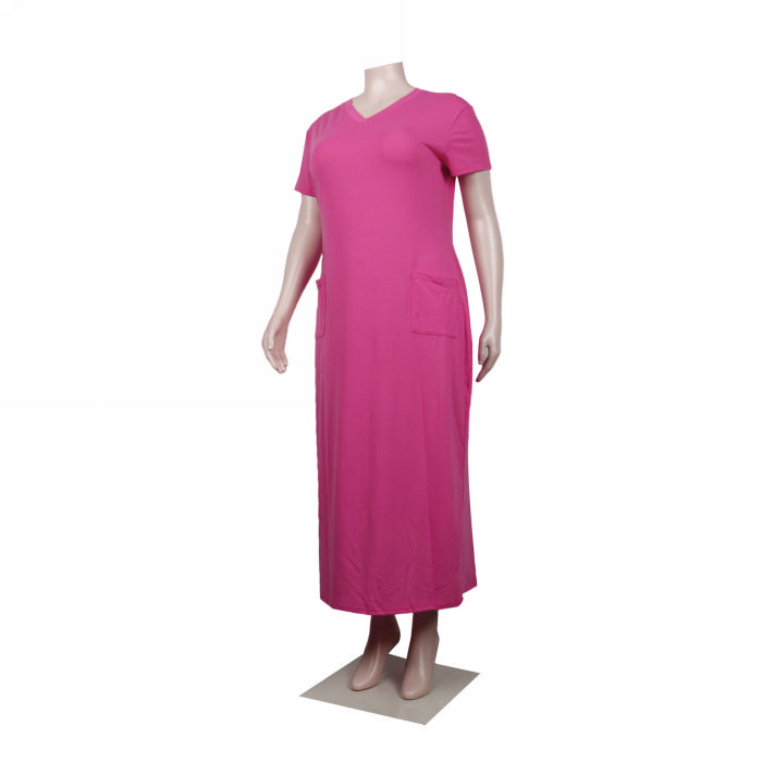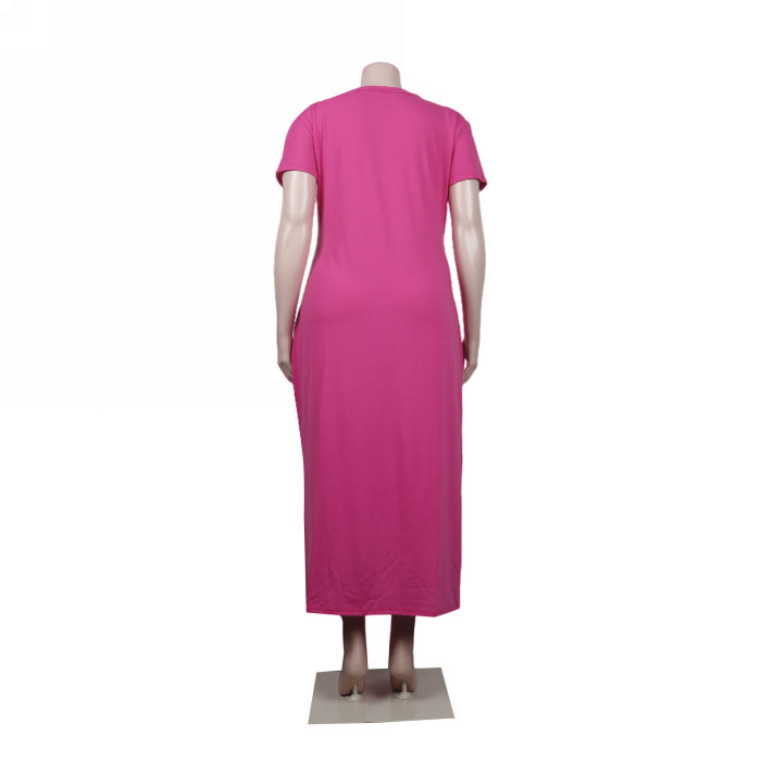 (Plus Size)(Real Image)2022 Styles Women Sexy INS Styles Solid Color Short Sleeve Maxi DressSKU: #XF27215-2