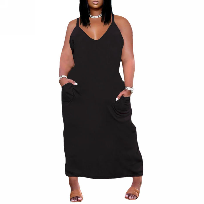 (Plus Size)(Real Image)2022 Styles Women Sexy INS Styles Solid Color Strap Maxi DressSKU: #XF27216-1
