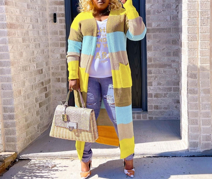 (Plus Size)(Real Image)2022 Styles Women Sexy Spring&Winter TikTok&Instagram Styles Contrast Color Open CoatsSKU: #XF27295-3