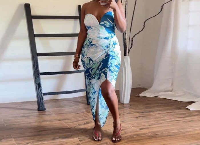 (Plus Size)(Real Image)2023 Styles Women Sexy&Fashion Spring&Summer TikTok&Instagram Styles Print Loose Maxi DressSKU: #XF27372-1