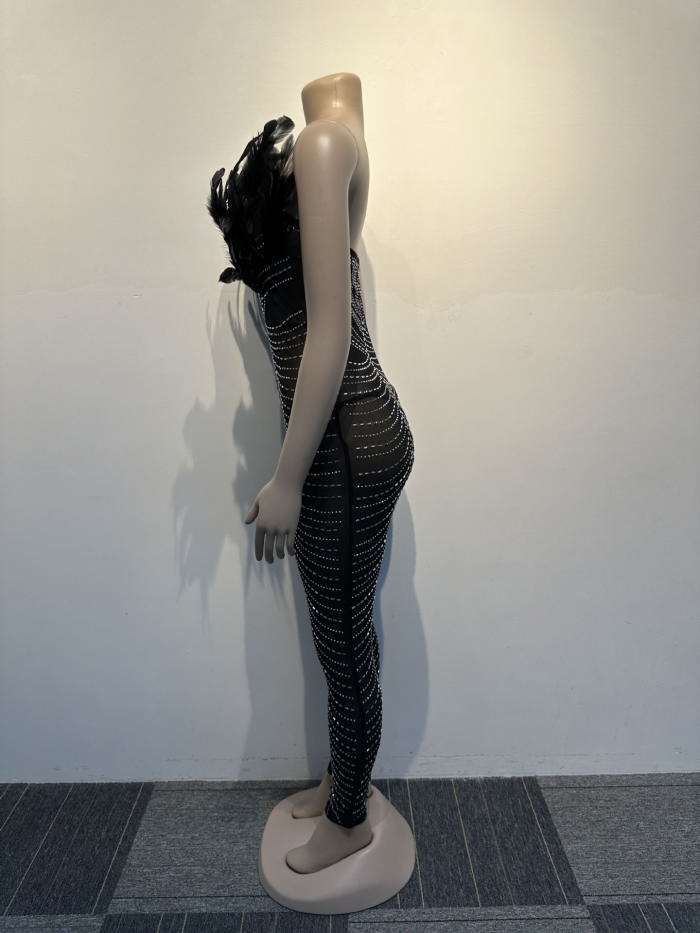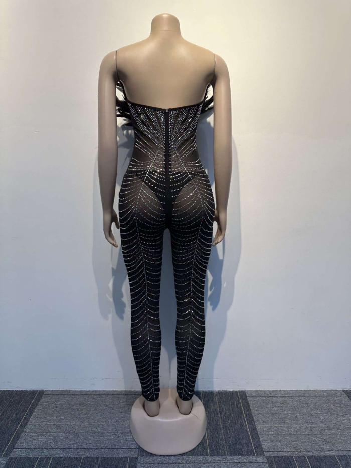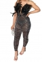(Plus Size)(Real Image)2023 Styles Women Sexy&Fashion Spring&Summer TikTok&Instagram Styles Print Loose Mesh JumpsuitSKU: #XF27381-1