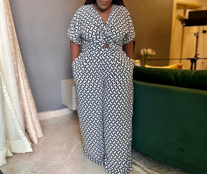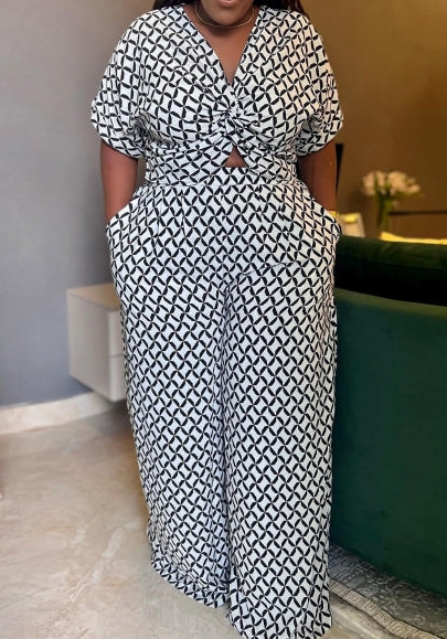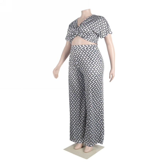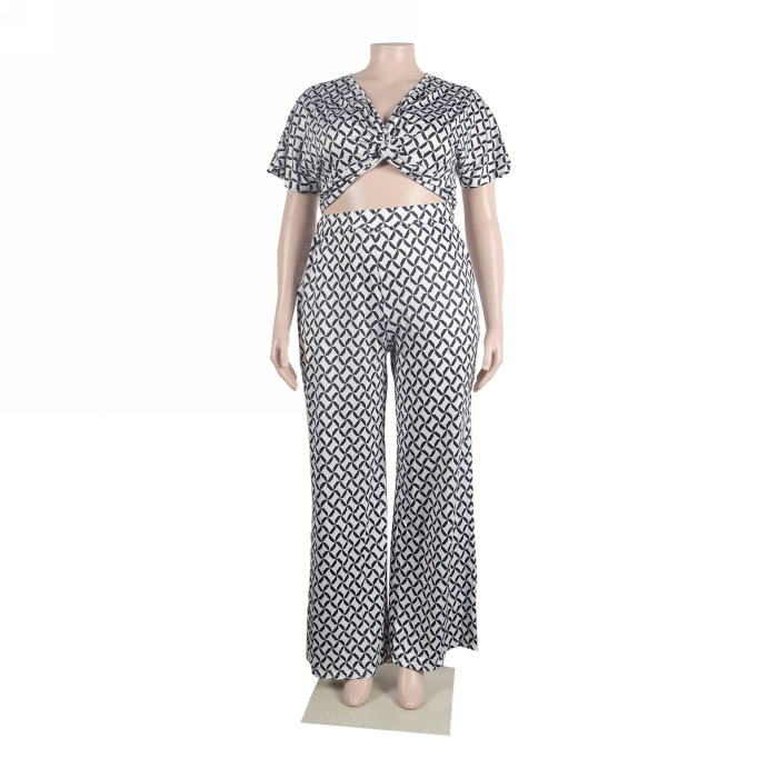 (Plus Size)(Real Image)2023 Styles Women Sexy&Fashion Spring&Summer TikTok&Instagram Styles Print Loose Two Piece SuitSKU: #XF27379-1