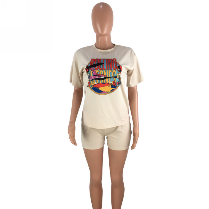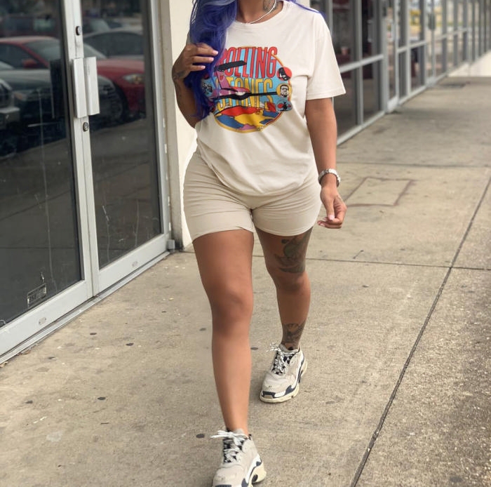 (Plus Size)(Real Image)2023 Styles Women Sexy&Fashion Spring&Summer TikTok&Instagram Styles Print Short Two Piece SuitSKU: #OU263-3