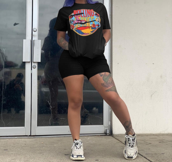 (Plus Size)(Real Image)2023 Styles Women Sexy&Fashion Spring&Summer TikTok&Instagram Styles Print Short Two Piece SuitSKU: #OU263-2