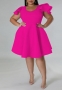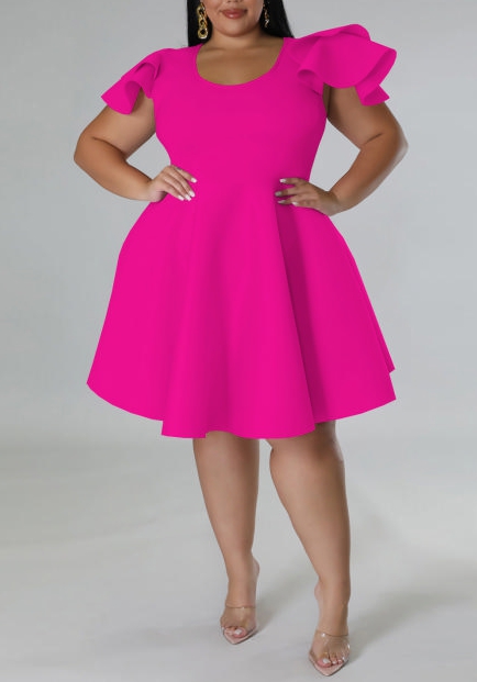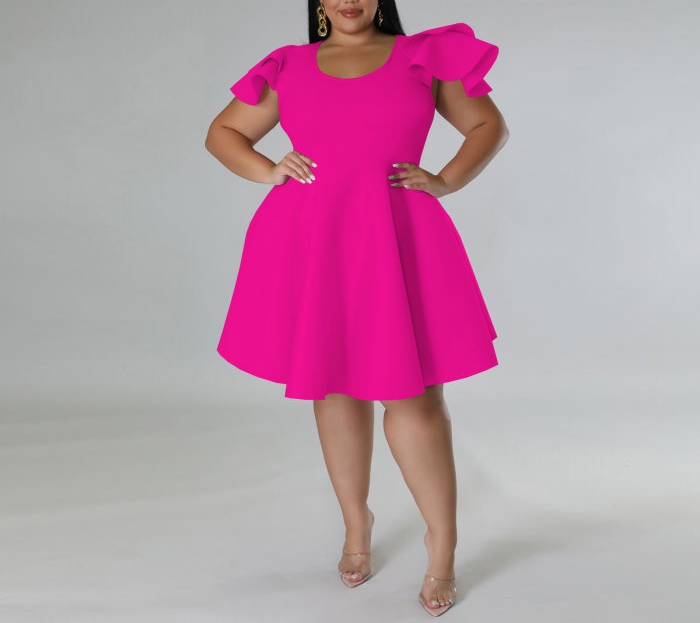 (Plus Size)(Rose)2022 Styles Women Fashion Summer TikTok&Instagram Styles Ruffle Hem Midi DressSKU: #XF13434-3