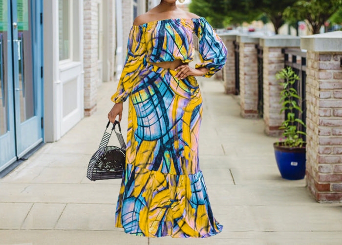 (Plus Size)(Yellow)2022 Styles Women Sexy Spring&Winter TikTok&Instagram Styles Print Maxi DressSKU: #CF03015-3