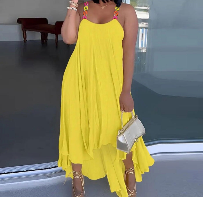 (Plus Size)(Yellow)2023 Styles Women Sexy&Fashion Spring&Summer TikTok&Instagram Styles Print Loose Maxi DressSKU: #XF27410-2