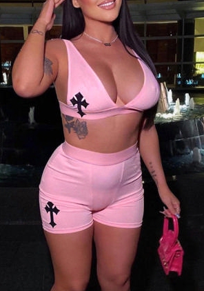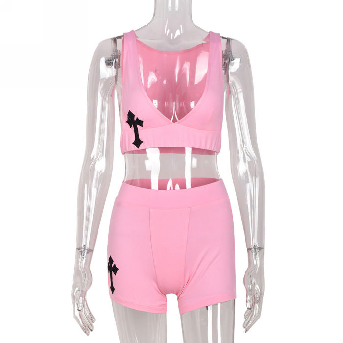 (Pre-Sale)(Real Image)2022 Styles Women Fashion INS Styles Print Cross Short Two Piece SuitSKU: #CF59210-1