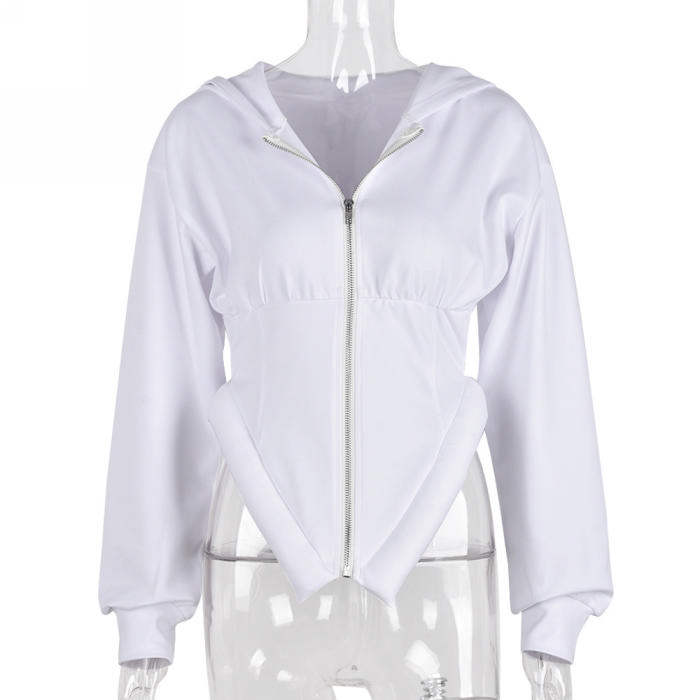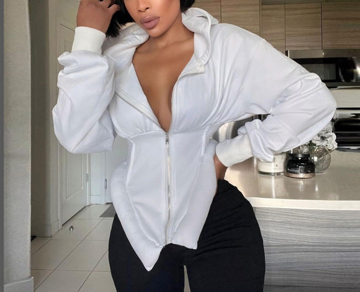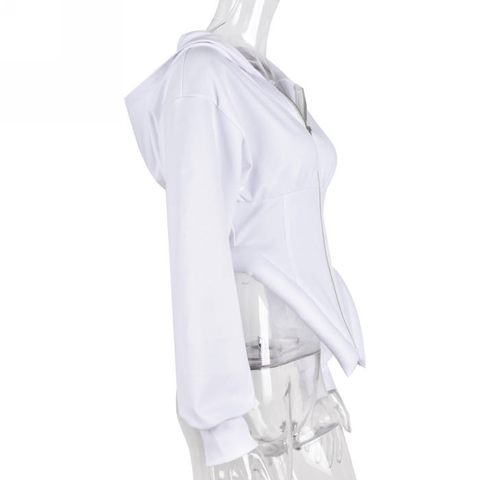 (Pre-Sale)(Real Image)2022 Styles Women Fashion INS Styles White Hoodie Front Zipper CoatSKU: #CF59212-1