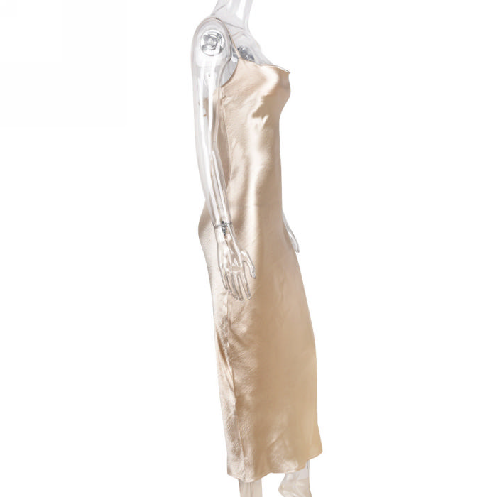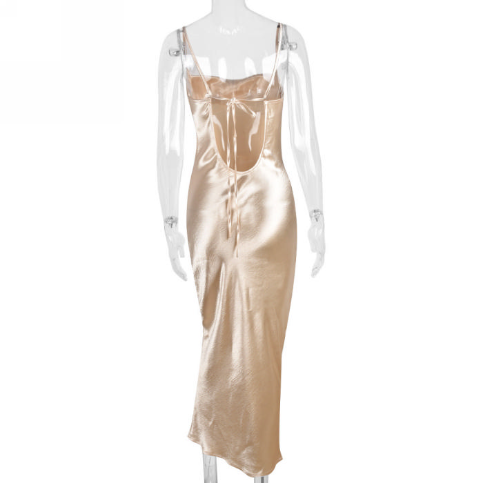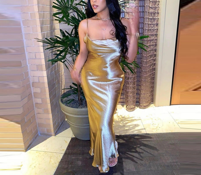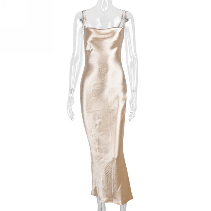 (Pre-Sale)(Real Image)2022 Styles Women Fashion INS StylesSilk Strap Maxi DressSKU: #CF59217-1