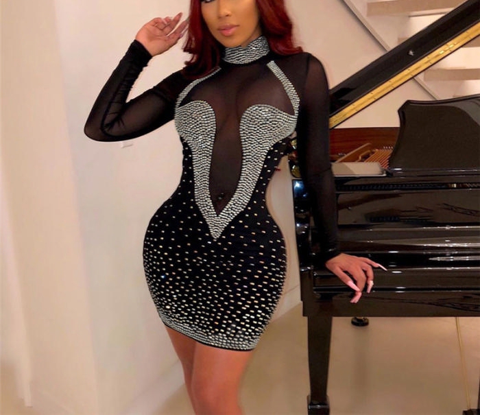 (Pre-Szle)2021 Styles Women Fashion INS Styles Fashion Autumn Sequins Mini DressSKU: #CF48361-1