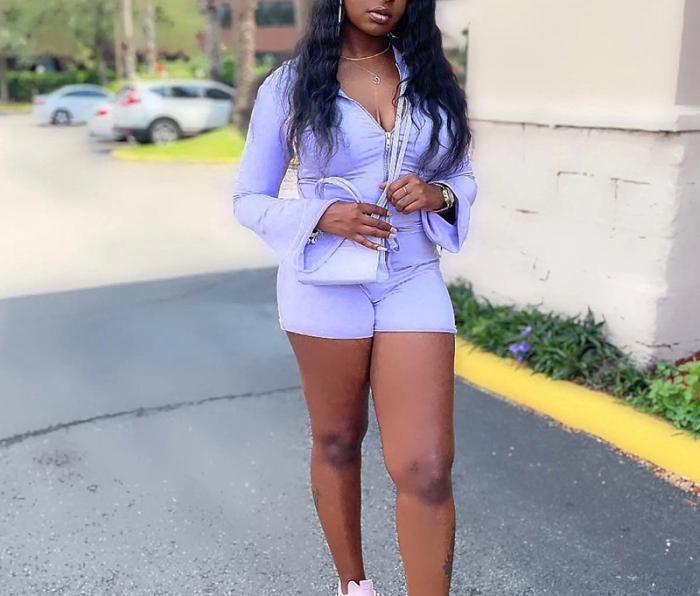 (Purple)2022 Styles Women Fashion Summer TikTok&Instagram Styles Front Zipper Hoodie RomperSKU: #CF47182-2