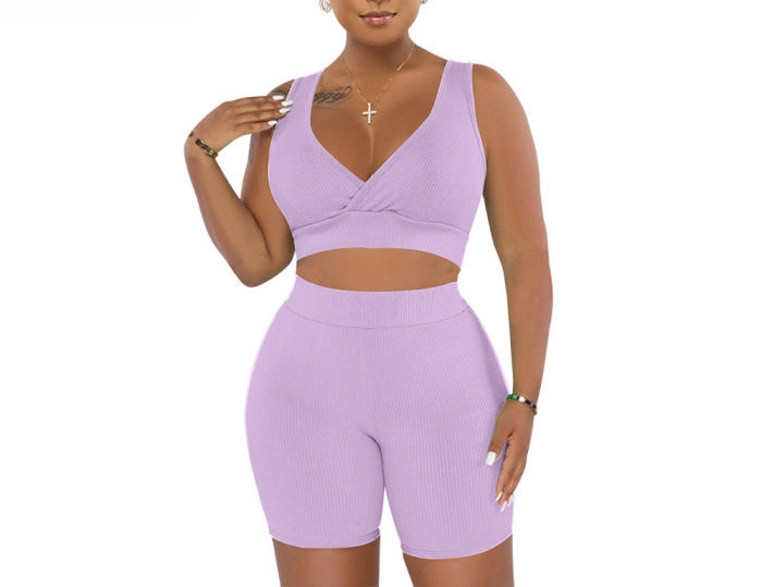 (Purple)2022 Styles Women Sexy Spring&Winter TikTok&Instagram Styles Short Two Piece SuitSKU: #CF82020-9